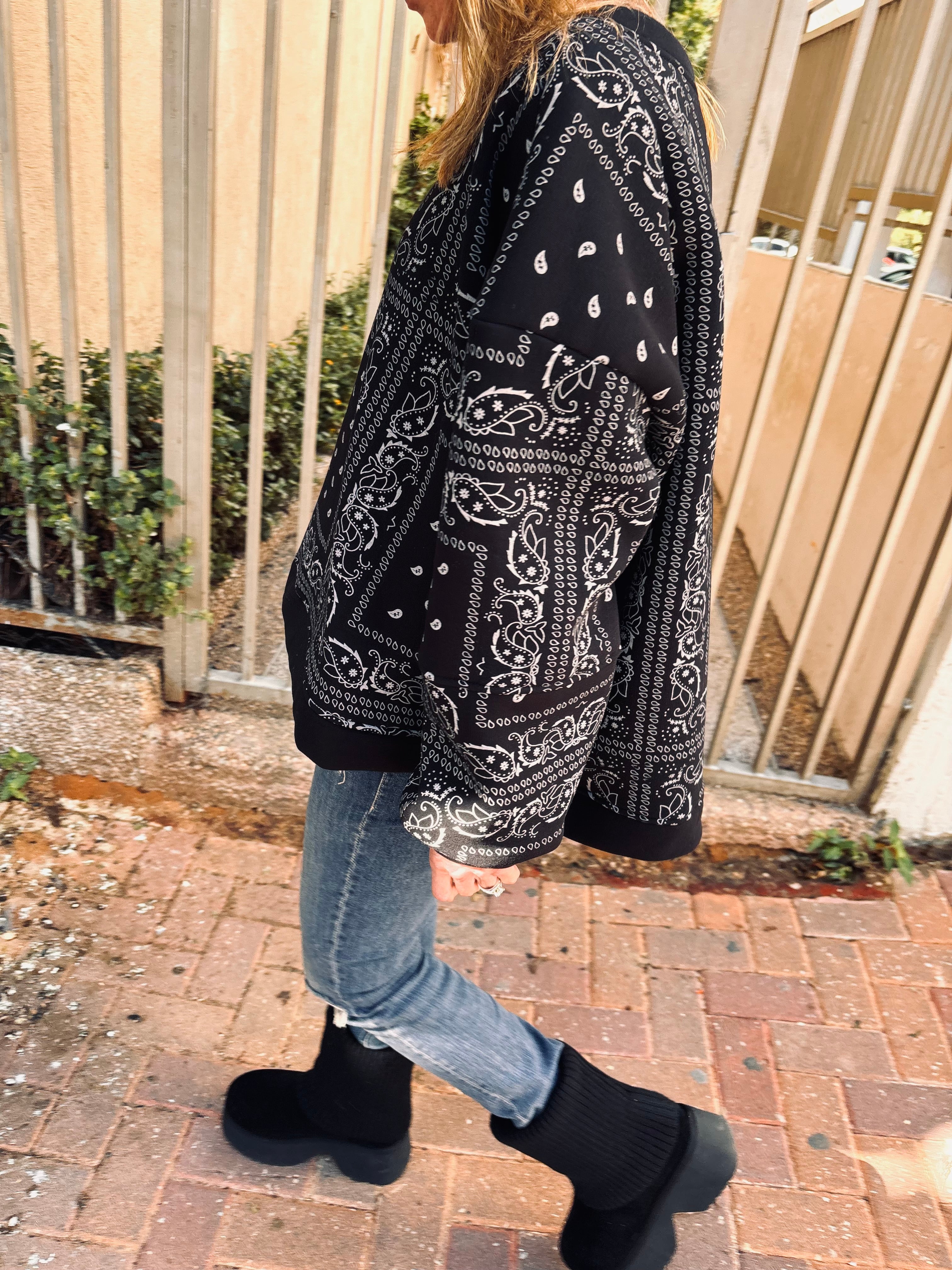 גזרה משוחררת ונוחה במיוחד, עם הדפס בנדנה / פייזלי ייחודי.