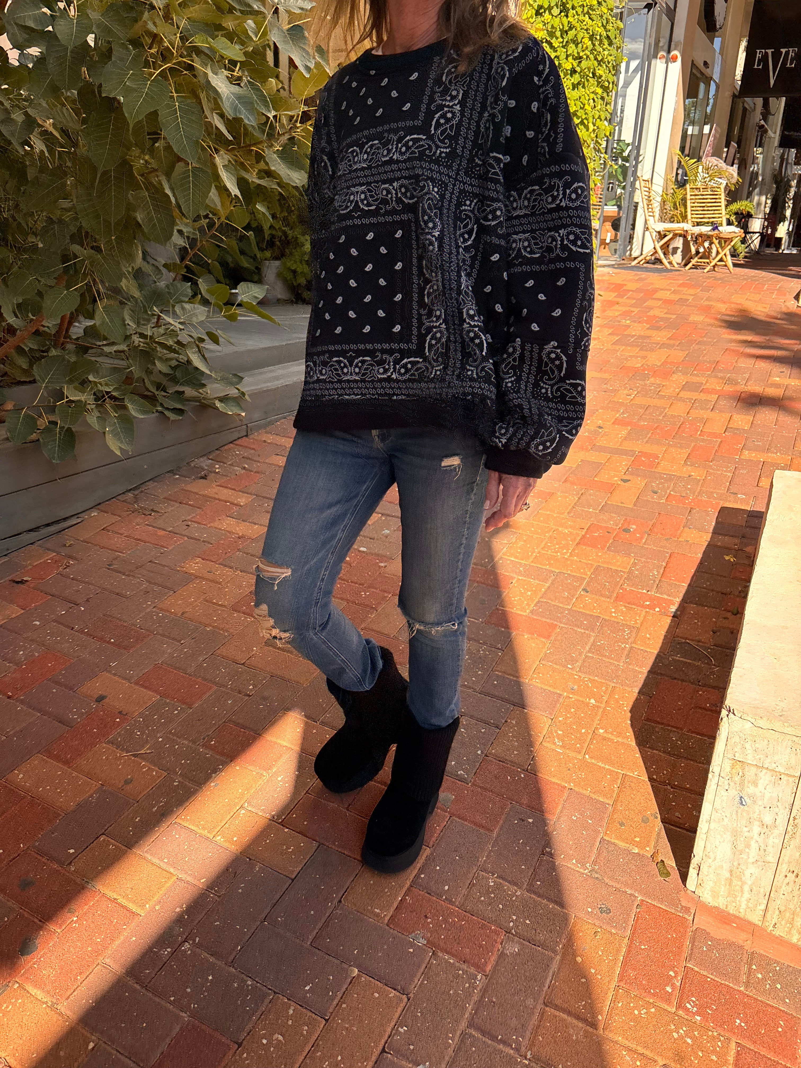 Designed for a relaxed, comfortable fit, featuring a bold bandana / paisley print.