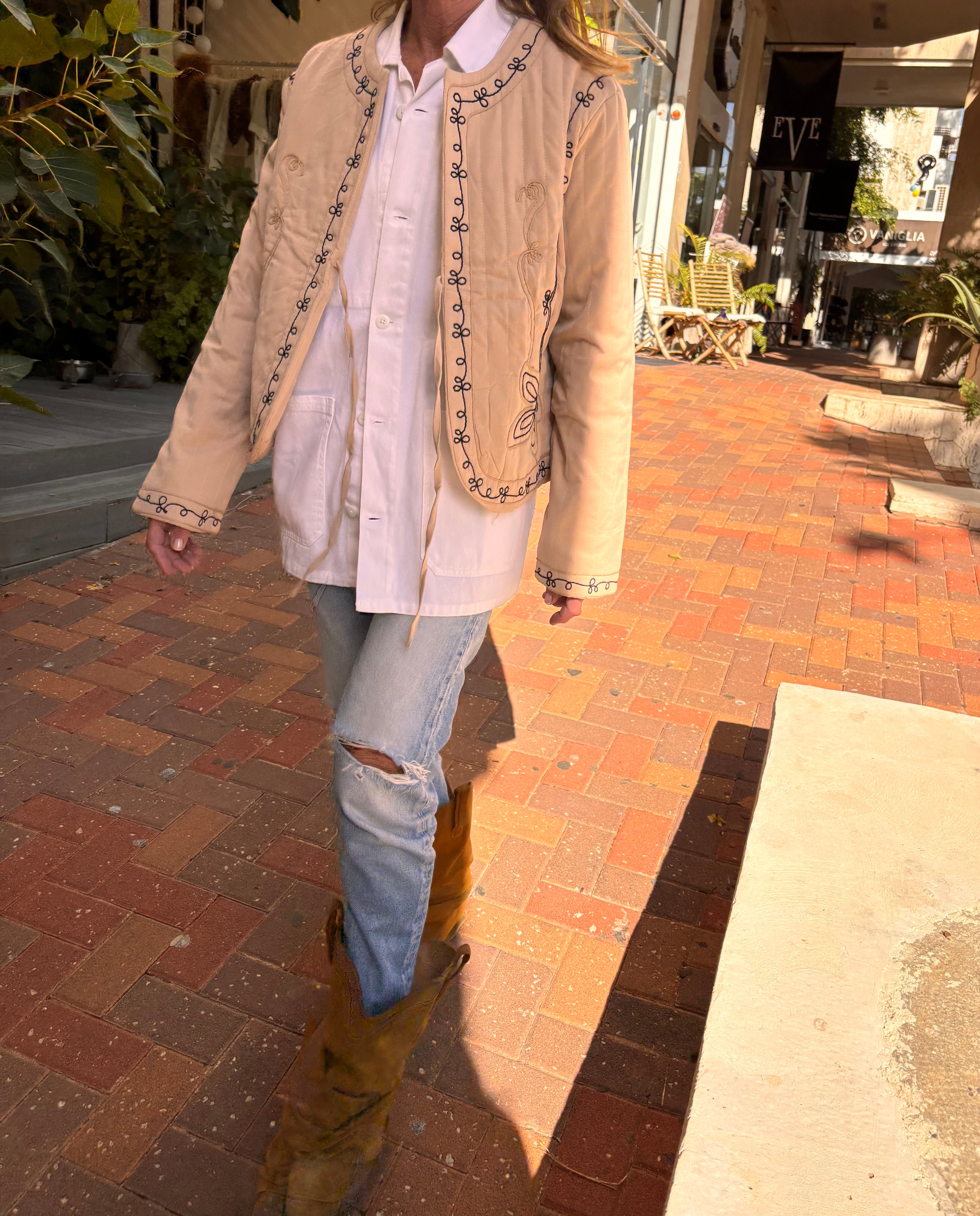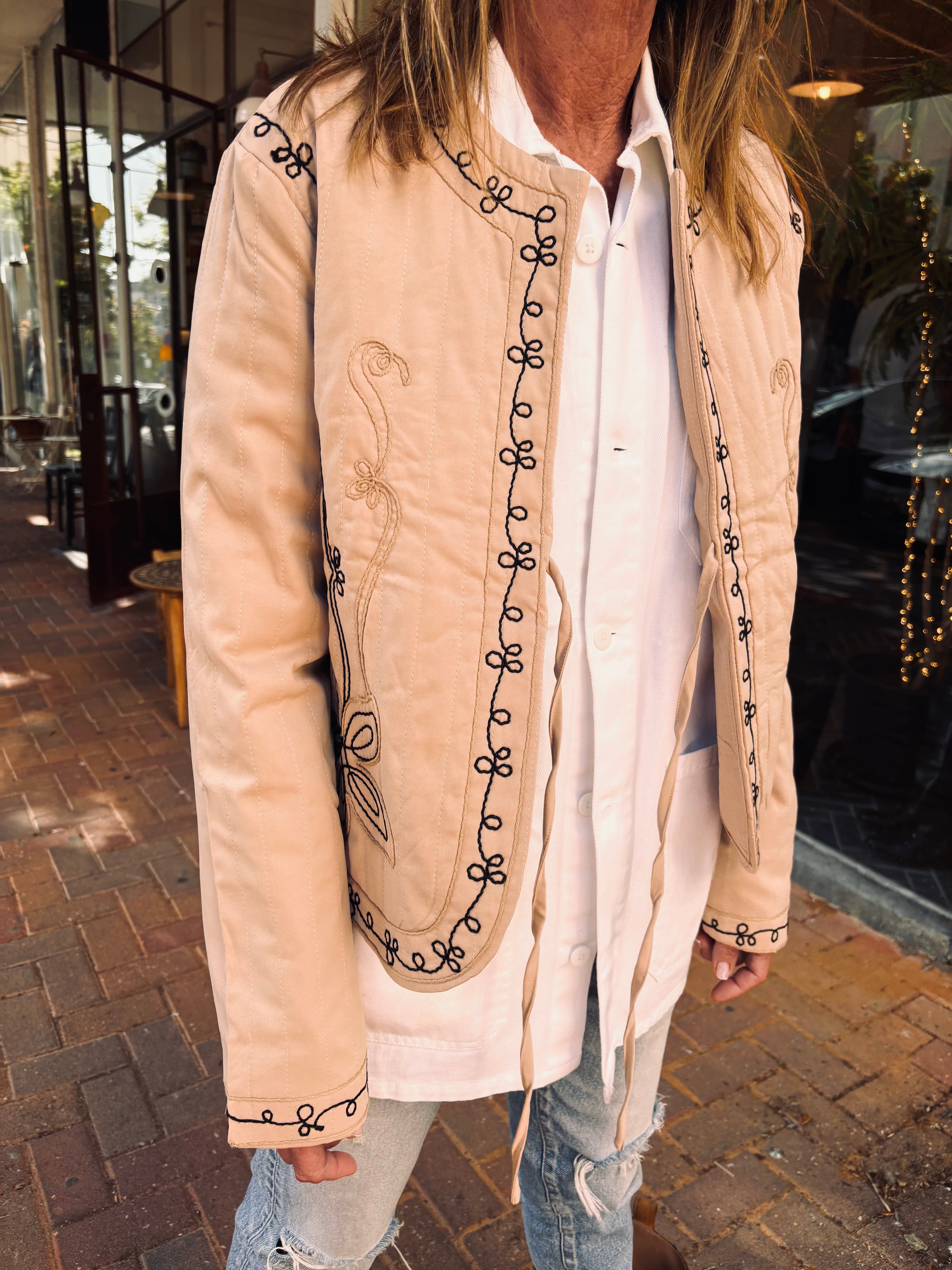 Lightweight embroidered jacket with a flattering fit and a boho-chic vibe. Perfect for an effortless everyday look.