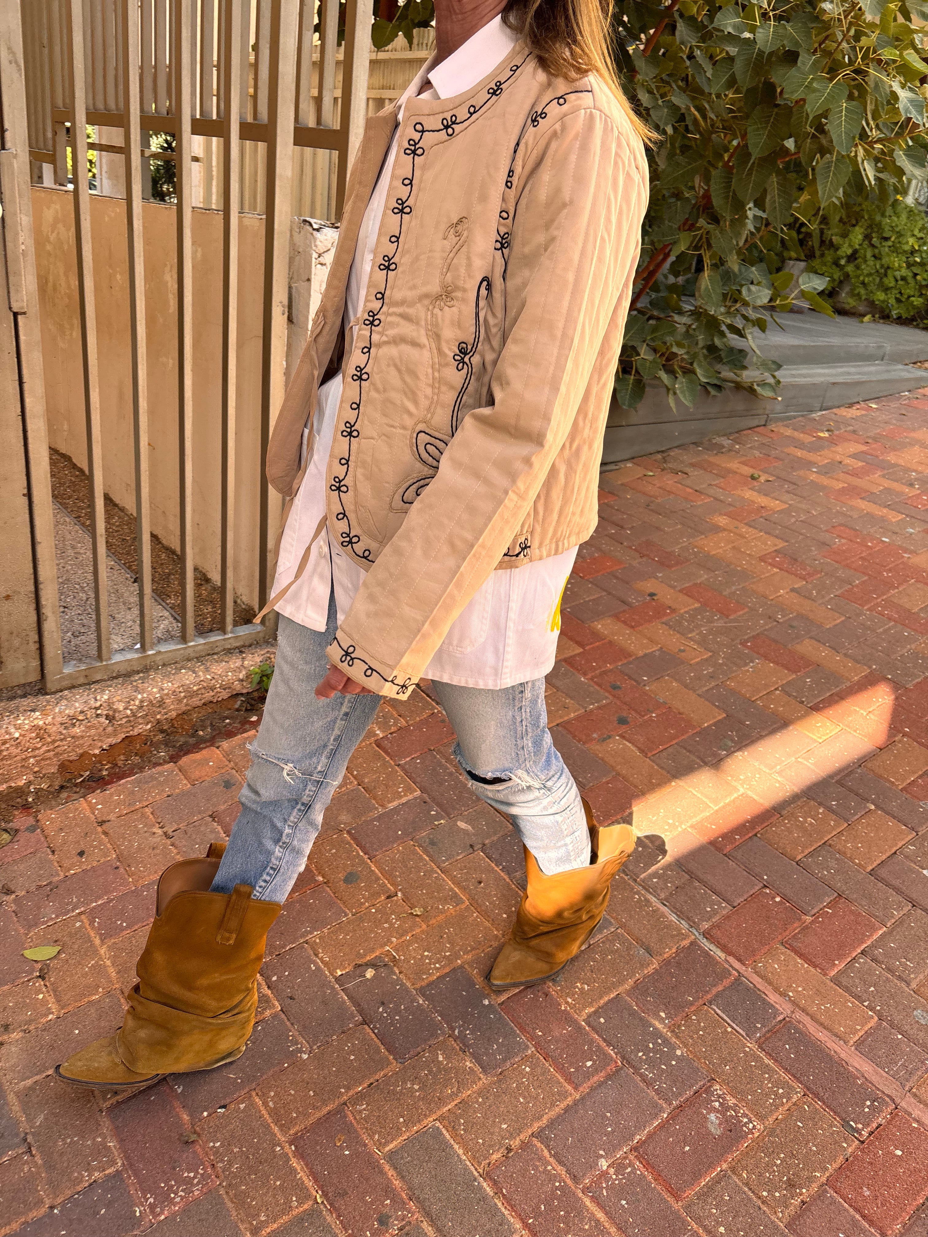 ג׳קט פוף קל עם רקמה עדינה, בגזרה מחמיאה וסטייל בוהו־שיק. מושלם ללוק יומיומי עם טאץ׳ ייחודי