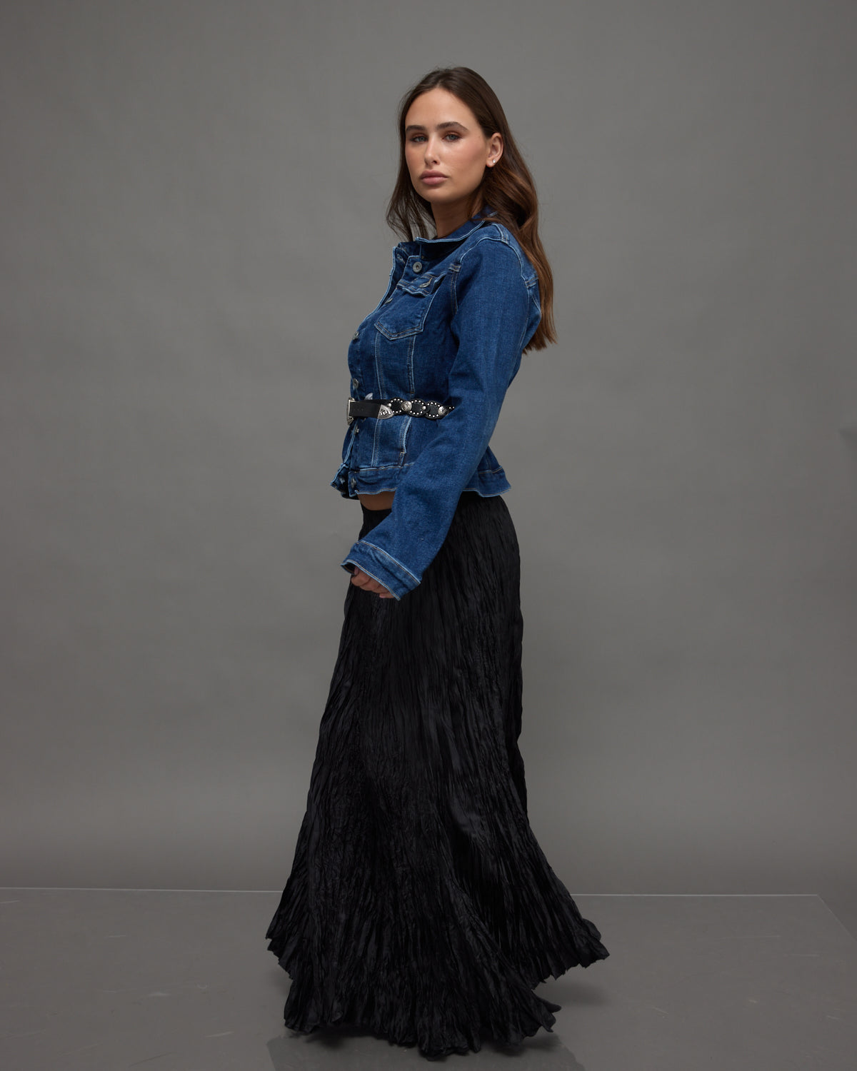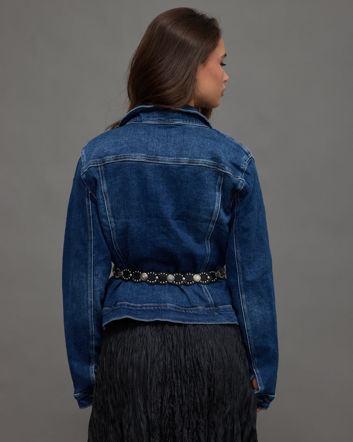 Classic denim jacket with a flattering fit and timeless detailing. Perfect for layering with anything from flowing dresses to casual jeans.