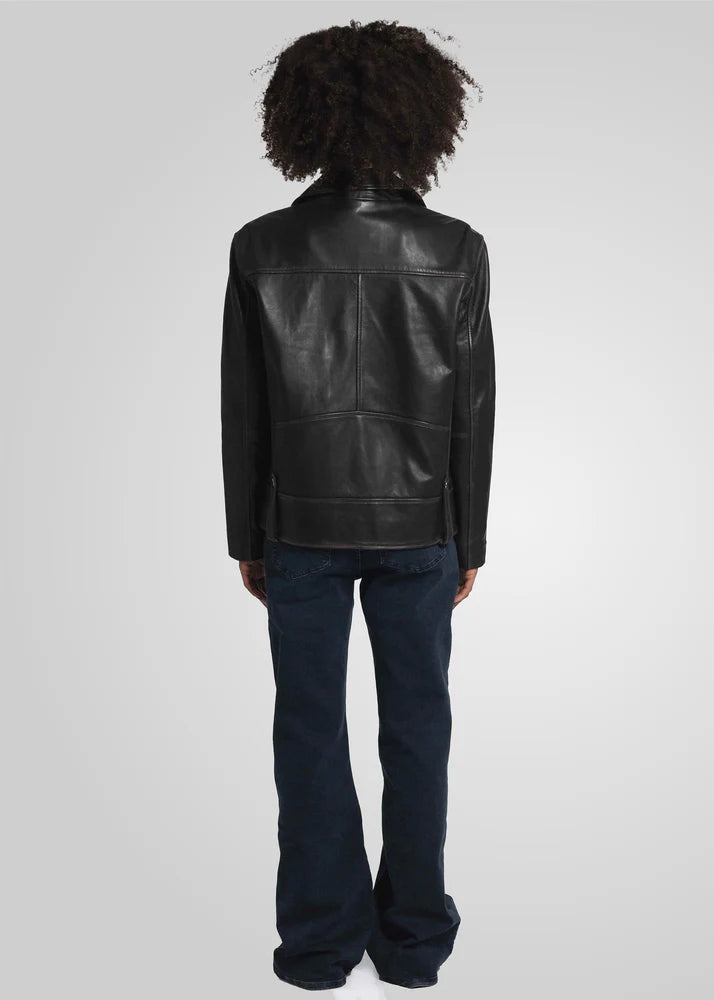 Discover the perfect blend of classic and contemporary with our oversized biker jacket. This standout piece features a bold relaxed fit that offers a modern edge to your wardrobe.HARPER is accentuated by sleek silver side zippers adding a touch of sophistication and contrast to its rugged design. Whether you're heading out for a casual day or a night on the town this jacket delivers both style and functionality with effortless flair.