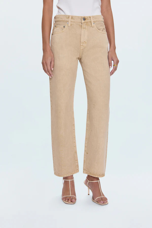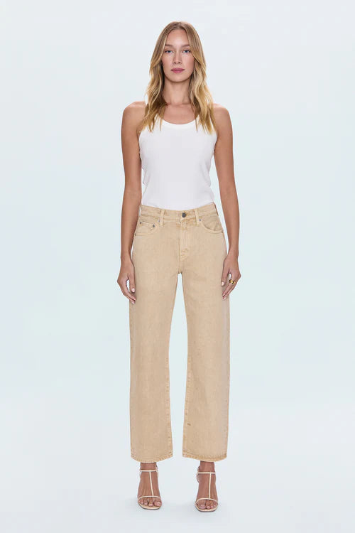LEXI MID RISE BOWED STRAIGHT JEAN - SAND DOLLAR