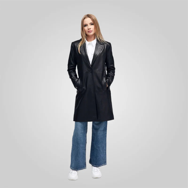 MELINDA - OVERSIZE KNEE LENGTH LEATHER BLAZER black
