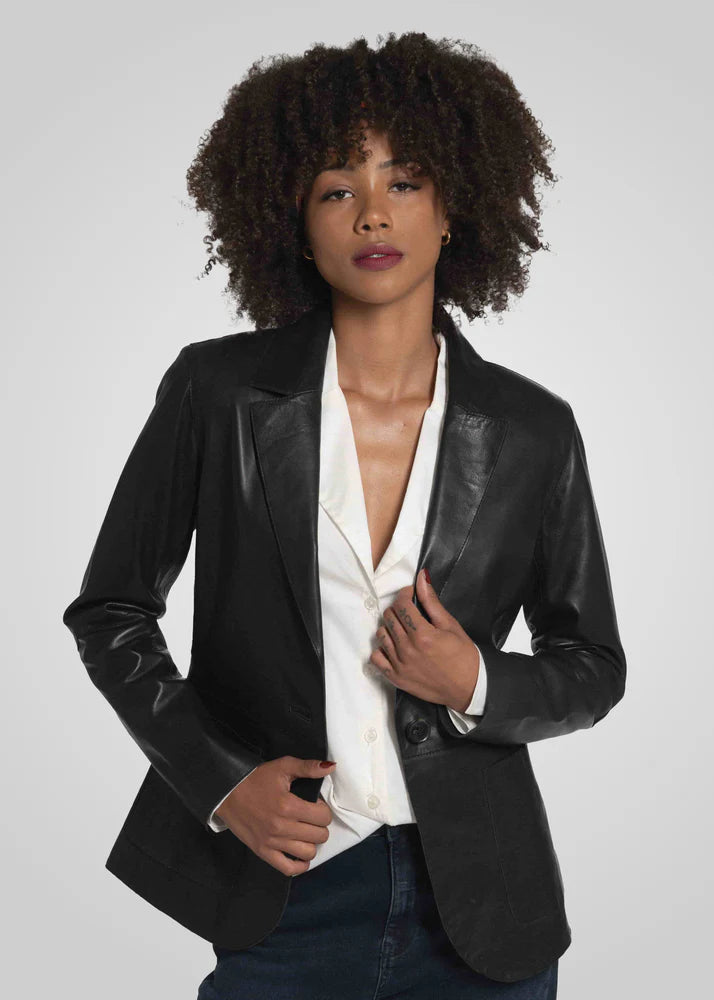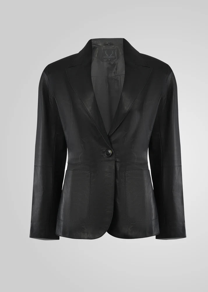 The NOIAN is a leather blazer with a clean classic design. It features a single-button front a sharp notched collar and two front pockets. Perfect for adding a polished finish to any outfit.