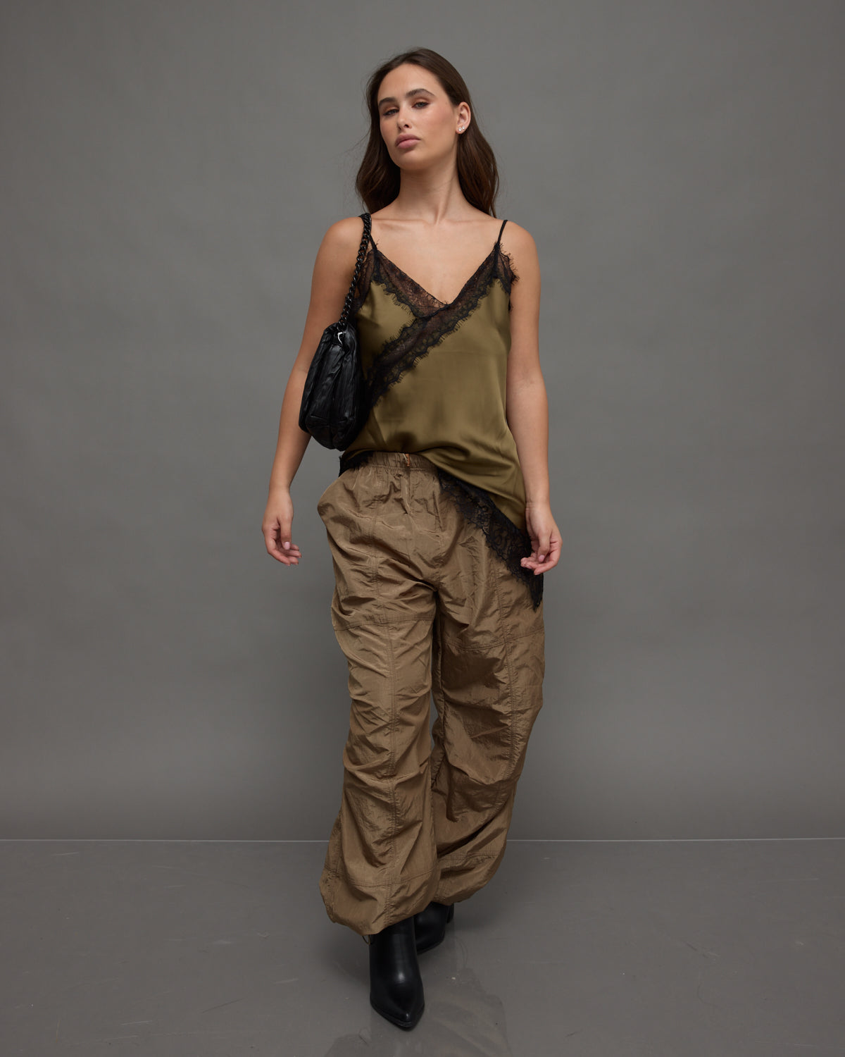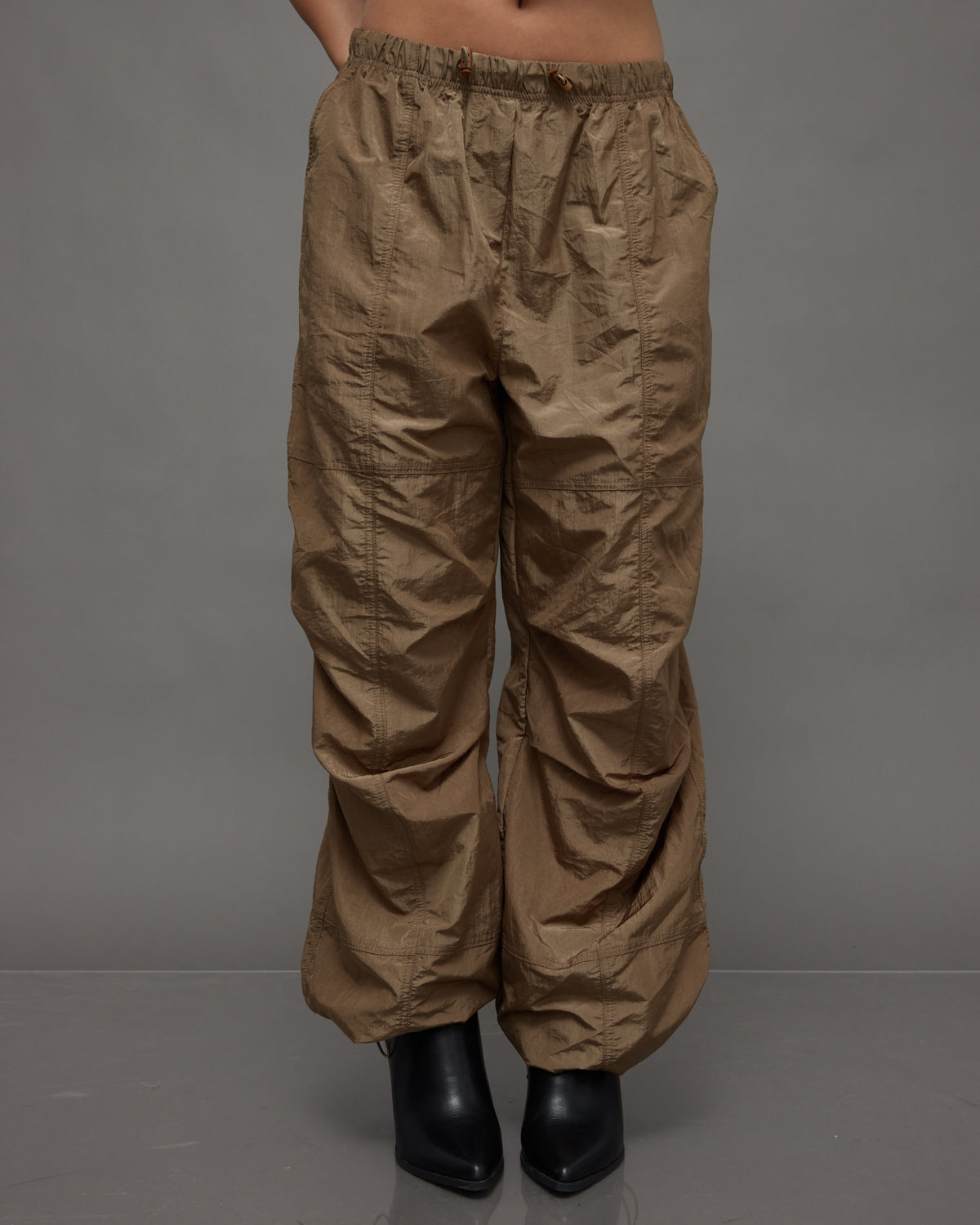 מכנסי ניילון קלילים בגזרה רחבה עם מותן אלסטית וכיסים – מושלמים ללוק קז’ואל אורבני